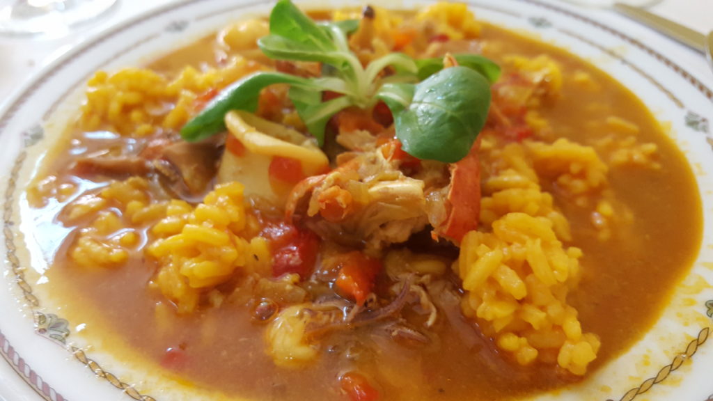 La fama del Restaurante Carpe Diem nos condujo a decantarnos por Arroz Caldoso con Bogavante. Un plato difícil de realizar ya que se deben conjuntar varios parámetros, a cada cuál más difícil. El arroz, uno de los platos estrella en toda España, ha de ser vigilado muy de cerca, tratado con mimo y dedicar atención para evitar se pase, se cree el socarrat -arroz quemado y pegado al recipiente de cocinado- o bien se rompa por exceso de agua y tiempo.