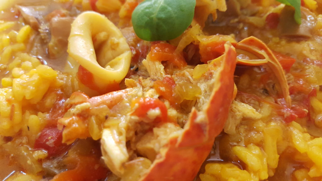 Unir un manjar del mar, como el Bogavante, cuya carne se ha criado en sal marina, aporta un sabor muy peculiar al plato; de igual forma agrega ese añadido al caldo del arroz, siendo una dificultad importante para regular la cocción y evitar caer en el sabor excesivamente salado.