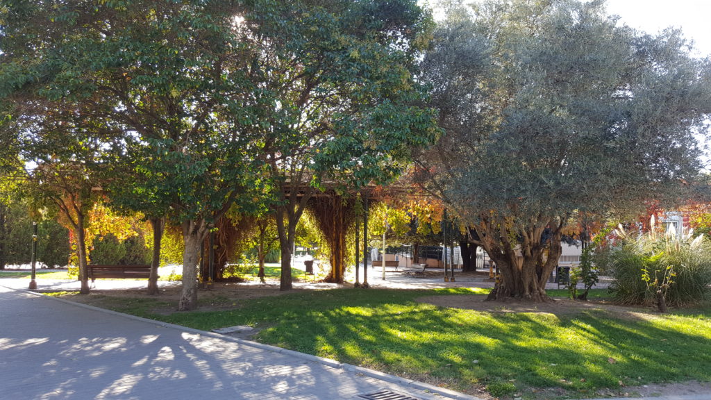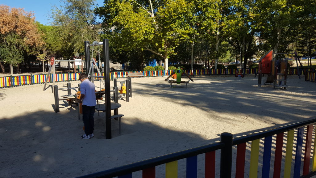 Siempre escucho los consejos, de igual forma busco completar los datos en Internet. La zona se veía tranquila, en el «centro» del Parque Norte de la localidad. El bueno de San Google revelaba próxima una zona de columpios y diferentes elementos de juego, incluidas algunas de las más modernas máquinas para distracción de los jóvenes y más jóvenes; así como unos bancos de descanso de madera a la sombra de un buen grupo de árboles.